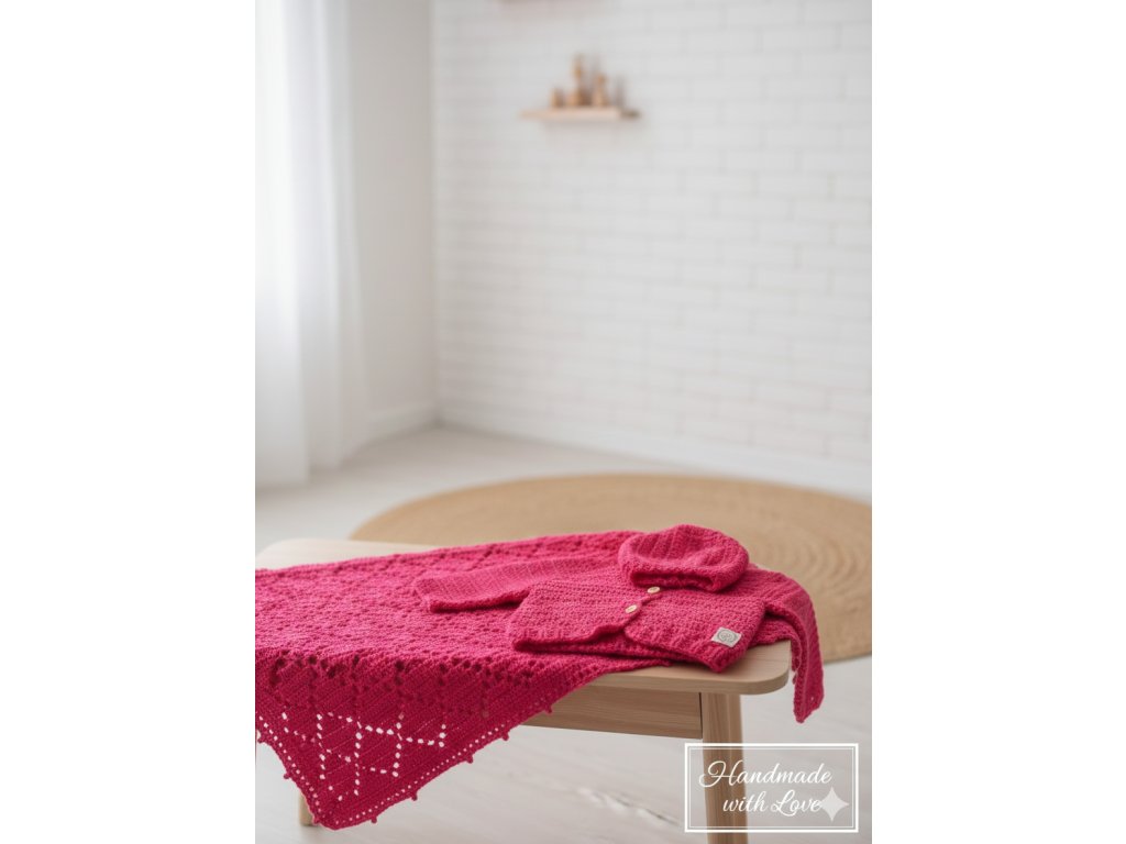 „Dokonale zladení na každej prechádzke.“ Vytvorte svojmu bábätku štýlový svet plný pohodlia. Náš set svetríka a deky je navrhnutý pre mamičky, ktoré milujú estetiku a kvalitu. Deka zahreje v kočíku a svetrík ochráni pred vetrom – oboje v identickom dizajne a prémiovej kvalite. Ručná práca zaručuje, že váš set bude vyčnievať z davu a pritom poskytne dieťatku maximálny komfort.