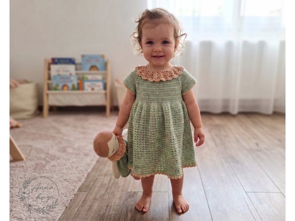 Predstavte si svoje dievčatko, ako v týchto šatách beží po drevenej terase, v rukách drží kyticu sedmokrások a jej krása pripomína staré časy, kedy bol svet akosi pomalší a láskavejší. Sú uháčkované zo 100% bavlny, aby ju hýčkali pri každom pohybe, či už bude objavovať tajomstvá starej záhrady, alebo sedieť na kolenách u dedka.